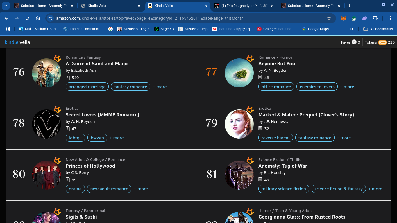 The saga is called Anomaly. Never have I had such steady incoming revenue or spent so much on advertising for a project. The royalties were low, the bonuses were high, and in the end, Kindle Vella died under the weight of the flaws in its own business model. With no availability outside the U.S., no advertising on Amazon, and a strange user interface, Kindle Vella struggled to get its footing from the start. Amazon finally got tired of spending money on it.